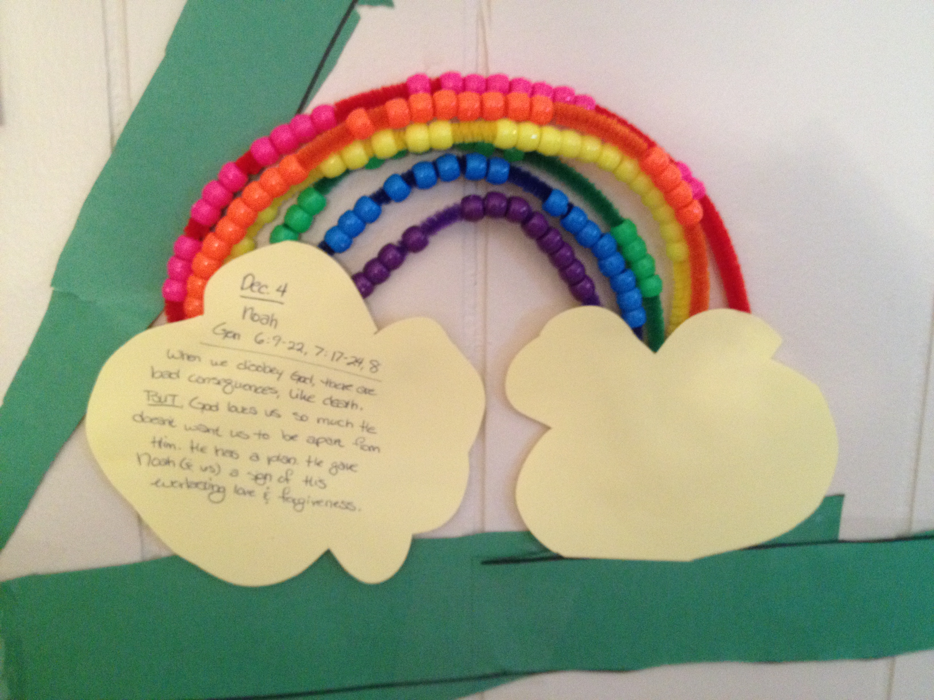 First, is using pipe cleaners and beads to make rainbows, and a brief description of the story on the cloud. (This was part of our advent calendar last December.)