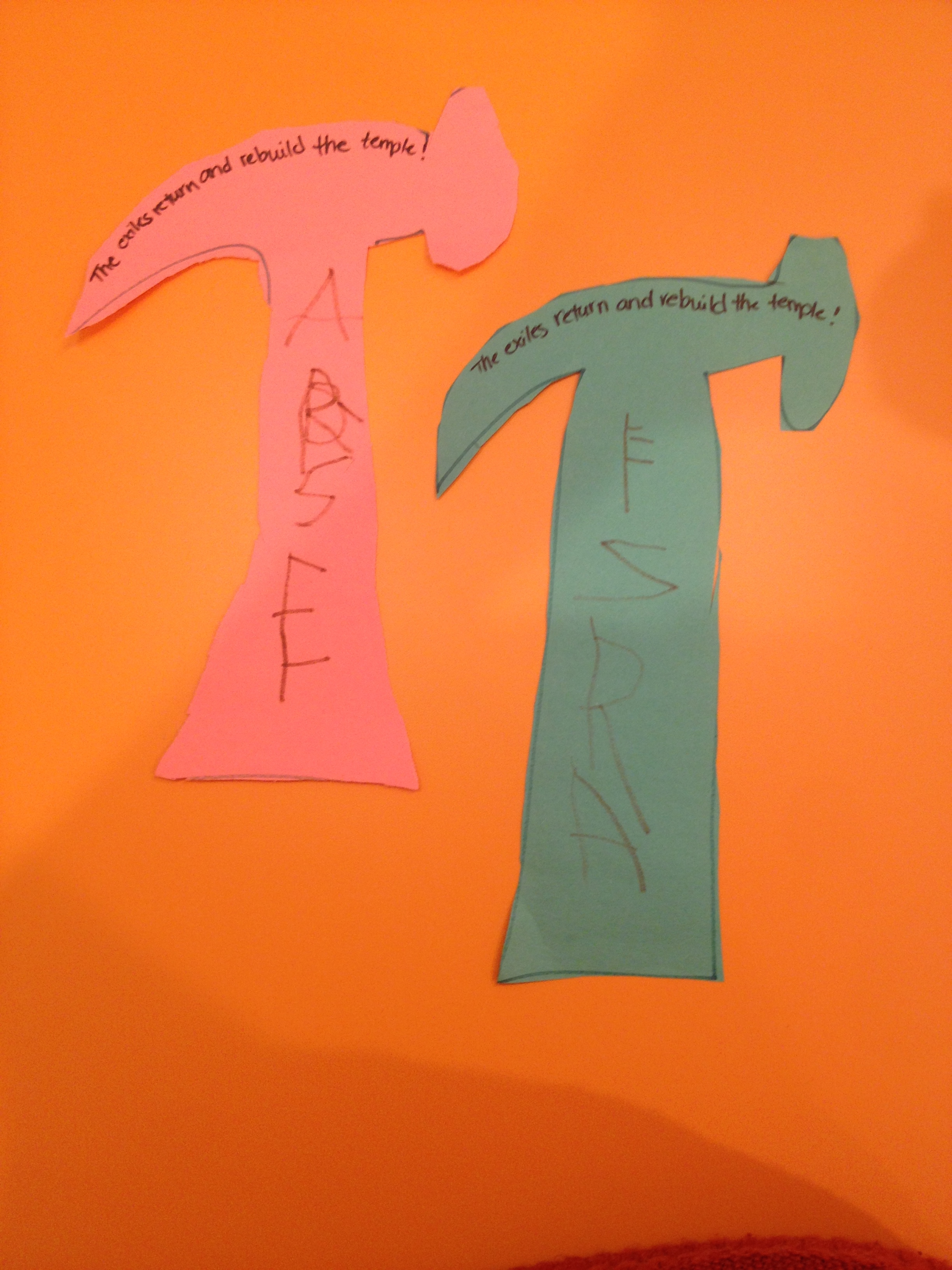 For our craft today, we made hammers to symbolize the rebuilding.